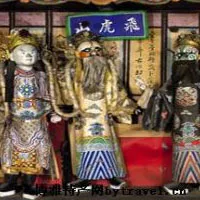 清光緒三十二年(1906),平遙城內(nèi)六合齋紙?jiān)甑闹嚾嗽S立廷(許老三)制作了36閣紗閣戲人,專門用于春節(jié)、元宵節(jié)期間舉辦社火活動(dòng)時(shí)在市樓內(nèi)展出,或民間喪事活動(dòng)中在靈前擺放。據(jù)記載,這組戲人每閣工價(jià)兩千文, 閣高70厘米,戲人高50厘米左右,形體優(yōu)美,眉目傳神,裝飾逼真, 栩栩如生,具有較高的文化品位,引人入勝,堪稱平遙紗閣戲人的代表之作?,F(xiàn)保留下來的28閣真品藏在平遙的清虛觀內(nèi)。紗閣戲人的閣內(nèi)橫額上題寫著劇名,有的還將劇名刻在木閣的底板上。平遙紗閣戲人所表現(xiàn)的戲劇內(nèi)容十分廣泛,大致說來,有歷史劇14種,其中春秋戰(zhàn)國故事劇3種,分別為《八義圖》、《反棠邑》、《金臺(tái)將》;秦漢故事劇兩種,分別為《大進(jìn)宮》、《鴻門宴》;三國故事劇1種,即《趕龍船》;南北朝故事劇1種,即《春秋筆》;隋唐五代故事劇5種,分別為《南陽關(guān)》、《戰(zhàn)洛陽》、《雙帶箭》、《滿床笏》、《飛虎山》;宋元故事劇各1種,分別為《斬黃袍》和《百花點(diǎn)將》。除此之外還有俠義公案劇6種,即《司馬莊》、《鄧家堡》、《祥麟鏡》、《溪皇莊》、《畫春園》、《惡虎村》;英雄傳奇劇3種,即《余塘關(guān)》、《岳飛北征》、《困銅臺(tái)》;神怪故事劇4種,即《鐵釘床》、《狐貍緣》、《借傘》、《五岳圖》;家庭生活劇1種,即《三疑記》。