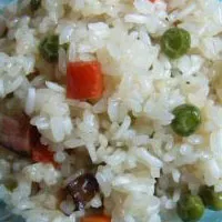 準備好食材,就可以動手烹制了。豌豆糯米飯的做法其實十分簡單,放好水后就三個字——“一鍋煮”!考究些的會先將咸肉炒出油,待用(從健康的角度講,如此走過油的咸肉既會更香同時放在糯米飯中又不會太過油膩);然后將水燒開,放入淘好的糯米;之后放下咸肉丁和少量炒出的油,還有豌豆,都一起放下去?,F(xiàn)在,一般人家用的是電飯煲,所以水開后,關火,放在電飯煲里差不多半個小時就可以食用了。