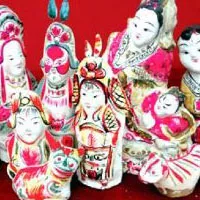 小郭泥塑之所以能夠暢銷各地,經(jīng)久不衰,是與藝人們的苦心鉆研,并從現(xiàn)實(shí)生活中吸取營(yíng)養(yǎng),不斷創(chuàng)新、提高分不開的。老藝人常說(shuō)“做戲劇人物,要看戲臺(tái)上生旦凈末丑的形象和穿戴;做動(dòng)物,要注意雞、狗、牛、馬的神氣”。并說(shuō):“泥人是給孩子玩的,只要花梢好看就行,不能太真”。因此作品并不酷似實(shí)物,而是有所美化,有所夸張。但這種美化和夸張又都有一定限度,總離不了大譜。例如各種娃娃,往往要夸大頭部,做成“肥頭大耳”,這不僅表示健康幸福,而且也是兒童筆下的人物特征。他們做的“ 髻娃娃”,頭幾乎和身子等高,一派天真無(wú)邪的稚氣。但為了再現(xiàn)武生和刀馬旦的英姿,就沒有把“楊宗保和穆桂英”的身軀縮得太短。這些表現(xiàn)手法,也就是傳統(tǒng)藝人特別重視的“不似之似”。新一代的泥玩藝人,他們不僅繼承著家傳和師傳的某些獨(dú)特技法,而且深受現(xiàn)代戲劇、電影、年畫、工藝美術(shù)的熏陶,在表現(xiàn)手法上又有了新的突破,他們不囿于固定的形式,而是按照自己的審美觀點(diǎn)去創(chuàng)作,無(wú)論在題材上,或在形式上都充分發(fā)揮了自己的想象力和創(chuàng)造才能,使作品隨著時(shí)代的前進(jìn)而富有變化,逐步發(fā)展成題材廣泛,形式多樣,比較成熟的一種民間藝術(shù)形式。