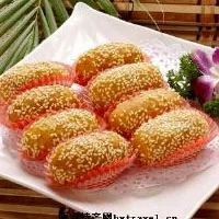 梅菉麻通是吳川糖果生產(chǎn)中的獨(dú)特名優(yōu)產(chǎn)品,該產(chǎn)品系用大糯米、水芋頭、白糖、芝麻等原料,經(jīng)過(guò)特殊 的處理方法和制作技術(shù)做成半成品,曬干后隨時(shí)備用。再加工制作時(shí),將此半成品先后投進(jìn)分別用文武火煮成不同溫度的兩個(gè)油鍋中去炸,炸至膨脹適度,取出淋上白糖膠,灑上芝麻即成。成品粗如甘蔗,長(zhǎng)7~8公分,中空充滿泡沫,入口松脆香甜,是糖果中佳品。麻通的制作,在吳川已有一百多年歷史,但其制作技術(shù)長(zhǎng)期秘傳,直至60年代才公開(kāi)。