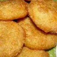 原 料:面粉500克,菜油50克,水350克,老面25克,堿適量。 調(diào) 料:白糖、芝麻、花生粒、糕粉、玫瑰糖等適量。 制作方法:炸。鍋先燒水,加入熟菜油后燒開,撒入面粉在鍋中邊攪邊燙熟。起鍋后放涼再加入老面發(fā)酵,然后加適量的堿中和揉勻揉透,制成“全燙面團”,將白糖、芝麻、花生米、玫瑰糖等制成白糖芝麻餡。將揉勻揉透的面團下成10個劑子,包入餡心,搓圓后壓成圓餅狀,下入7、8成熱的油鍋中炸成金紅色,熟后即成, 風(fēng)味特色:色澤金紅,外脆內(nèi)軟,餡心甜香、此品種為貴陽傳統(tǒng)小吃。 技術(shù)要領(lǐng):攪面時要順一個方向攪,炸面坯時用菜油炸,色澤才紅。( 貴陽)