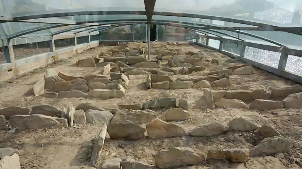 大伊山石棺墓現(xiàn)存遺址東西長(zhǎng)70、南北寬45米,總面積約3000平方米,距今6500年,是中國(guó)已發(fā)現(xiàn)的最早的石棺墓。