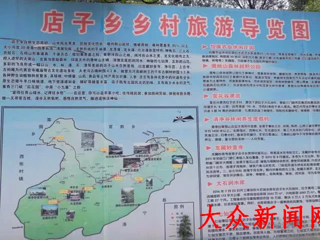 三門峽市人民政府官網(wǎng)的一則新聞報(bào)道中,陜州區(qū)被定義為“是河南省非貧困縣(區(qū))貧困發(fā)生率較高的縣(區(qū))之一”。位于陜州區(qū)東南深山區(qū)、占全區(qū)區(qū)域面積十分之一、僅有4000多總?cè)丝诘牡曜余l(xiāng)盡管被譽(yù)為中原“小九寨”、三門峽“后花園”,自稱“中國最美鄉(xiāng)村”,但近些年脫貧攻堅(jiān)工作依然是重點(diǎn)。矗立在店子鄉(xiāng)入境口的一排宣傳展板內(nèi)容顯示,該鄉(xiāng)意在依托當(dāng)?shù)刈匀簧鷳B(tài)良好、山水風(fēng)光秀美、民俗文化悠長等優(yōu)勢,發(fā)展蜂、牧、菌、藥、核桃、旅游六大產(chǎn)業(yè),助推脫貧攻堅(jiān)工作。其鄉(xiāng)村旅游產(chǎn)業(yè)板塊中,“怡康農(nóng)業(yè)休閑莊園”排在第一位。