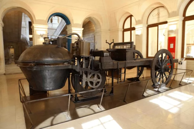 1770年法國發(fā)明家居諾(Joseph Cugnot, 1725-1804)發(fā)明的用蒸汽動力驅(qū)動的車輛模型。