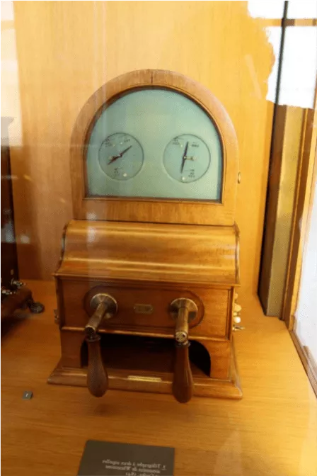 1842年惠斯頓公司生產(chǎn)的帶兩個磁指針的電報機