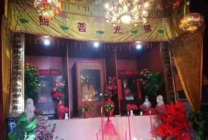 廟內(nèi)有不少人手捧巨大的香燭,點燃香燭,虔誠地跪在香案前的墊子上祭拜祈愿。廟右前方的香爐旁,香客們正不斷的燒著香錢,求得平安健康順遂。香爐旁還有一個小巧玲瓏的古石獅,它高約30厘米,腳有點殘損。相傳原本有一對石獅,因村人每次殺雞祭拜時,都會把雞血灑在獅身上,其中一只石獅居然成仙,飛到東海去了。留下來的這只獅子雖然腳有點殘損,但非??蓯郏饶叵硎苤疟姷亩Y拜,也盡心撫慰著百姓的企盼。