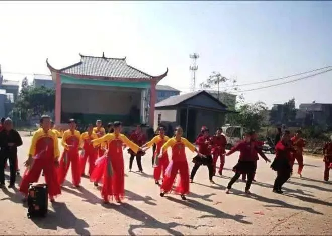 來到禮洲村團主廟前,我們發(fā)現(xiàn)這里熱鬧非凡,從四鄉(xiāng)涌來的村民川流不息。廟前炮竹聲不絕,香煙繚繞。舞臺前小廣場上,一隊三十多名穿紅著綠大媽大嫂,正伴著悠揚的舞曲,歡快地跳著廣場舞。滿臉笑容的大媽大嫂隨著音樂的律動,以嫻熟的動作,劃一的舞姿,翩翩然活力四射,展現(xiàn)出的是一幅生動活潑的盛世民樂圖。原來,我們今天運氣很好,正趕上團主朝會日活動,這隊表演廣場舞的大媽都是禮洲村村民。