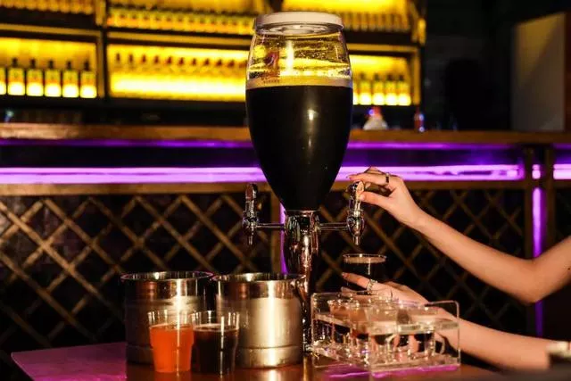 直接由桶倒到杯里的方式也非常粗獷過癮,雖然有可樂的甜味非常好入口,但其實(shí)度數(shù)不低,想更盡興也可以點(diǎn)容量更多的可樂扎。