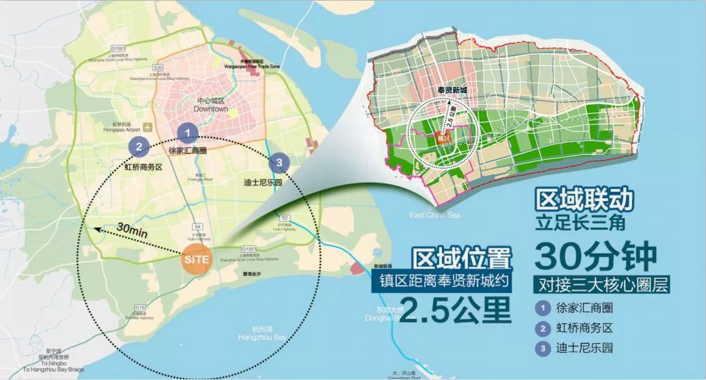 柘林作為上海南郊城鎮(zhèn)節(jié)點(diǎn),它位于杭州北岸、濱江沿海產(chǎn)業(yè)帶、奉賢新城城鎮(zhèn)圈。