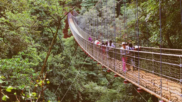 據(jù)介紹,這個(gè)項(xiàng)目一期總長(zhǎng)約1.2公里,設(shè)有33個(gè)樹上景觀平臺(tái),由漫步橋、橫木橋、廊橋、云梯橋、鋼絲橋、秋千橋、圓木橋、輪胎橋、梅花橋、腳板橋、Z形橋和4條滑索組成,結(jié)合蒙頂山原始森林植被,計(jì)劃打造成為亞洲最大的森林高端全新體驗(yàn)項(xiàng)目。