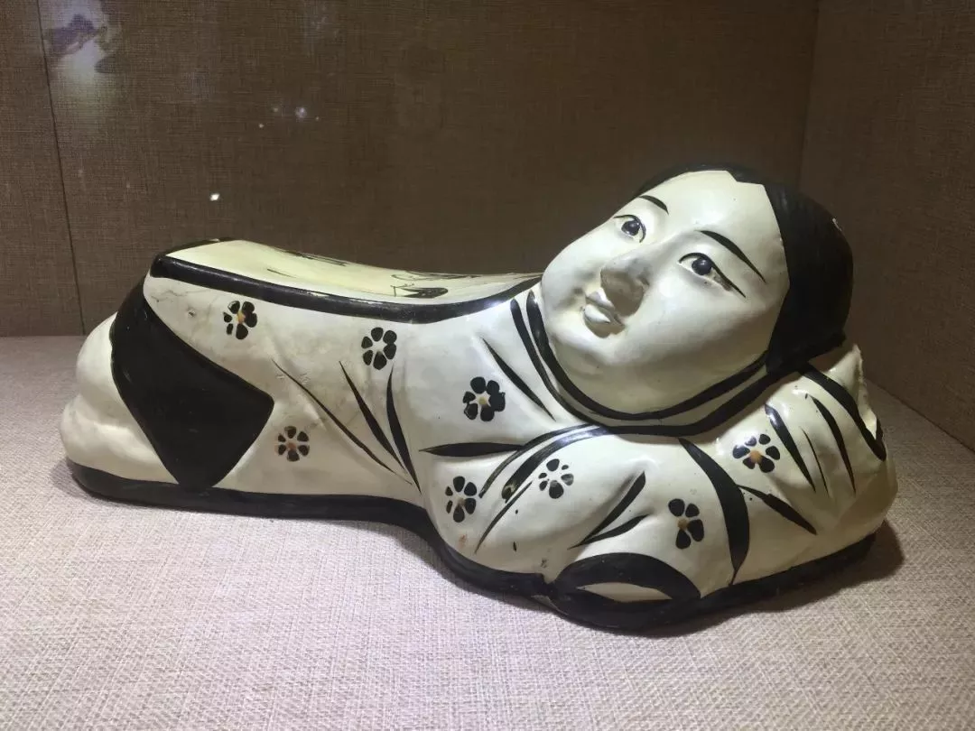 白地黑花孩兒枕