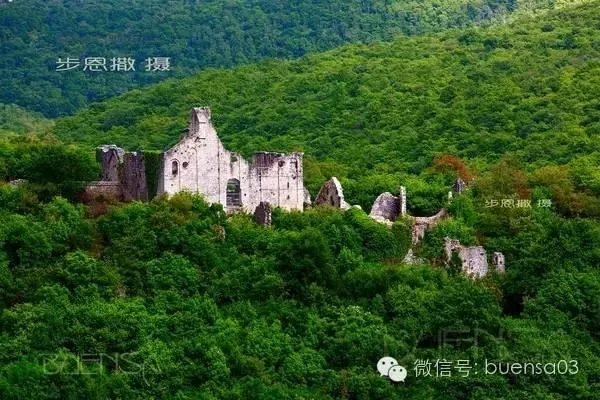 離開力木海峽,將近20公里左右的時候,遠遠就看到山谷中有一座廢棄的城堡。這也是我們那天行程中的第三站:Dvigrad,意思是雙城