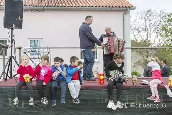 人們聚集在村子口搭建的舞臺周圍,喝著啤酒聊著天。