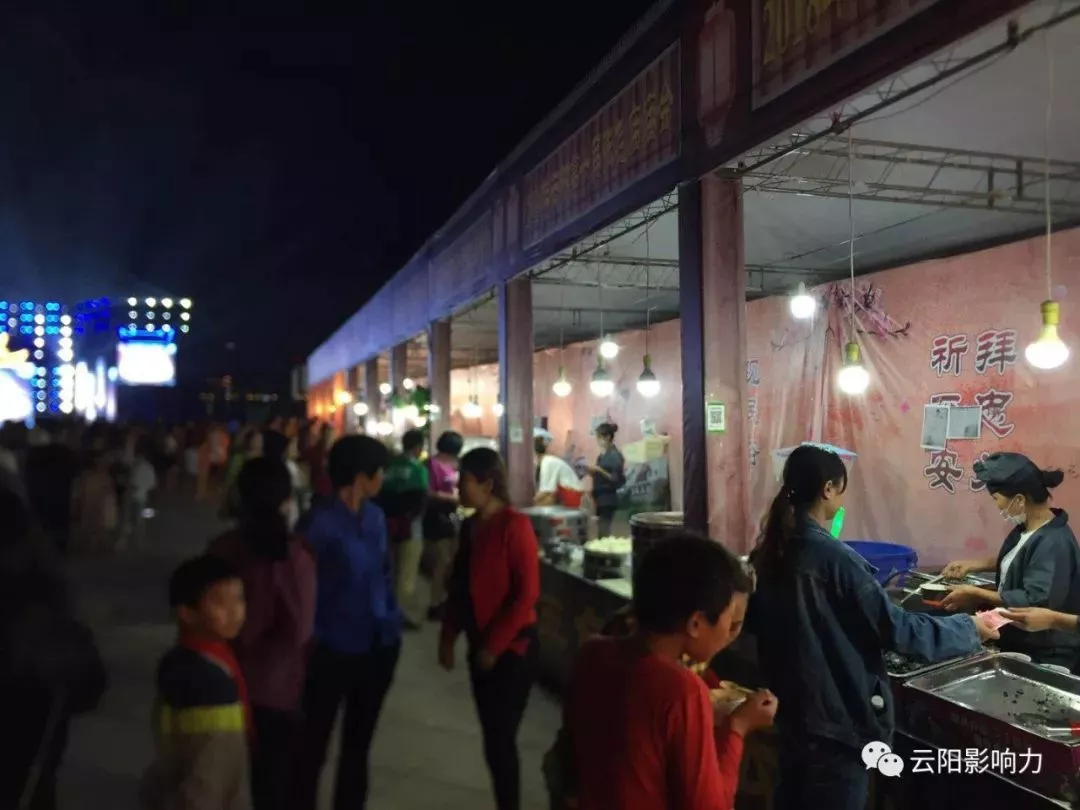 今晚參加啟動儀式的云陽人和游客達(dá)萬人以上,游客一邊看演出一邊品美食,烤肉、云陽特色米花糖、天津狗不理包子、炸雞……現(xiàn)場熱鬧非凡,人聲鼎沸。