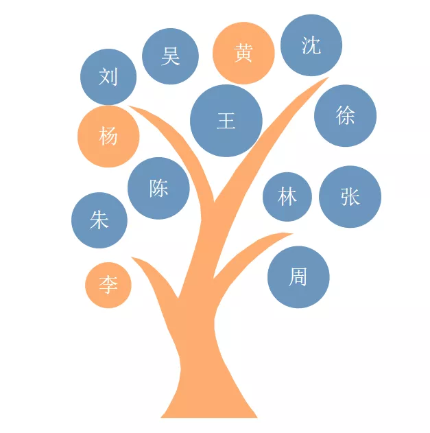 姓氏排行榜中的十大姓氏是王、陳、張、李、吳、徐、楊、周、黃、劉、朱、林、沈。