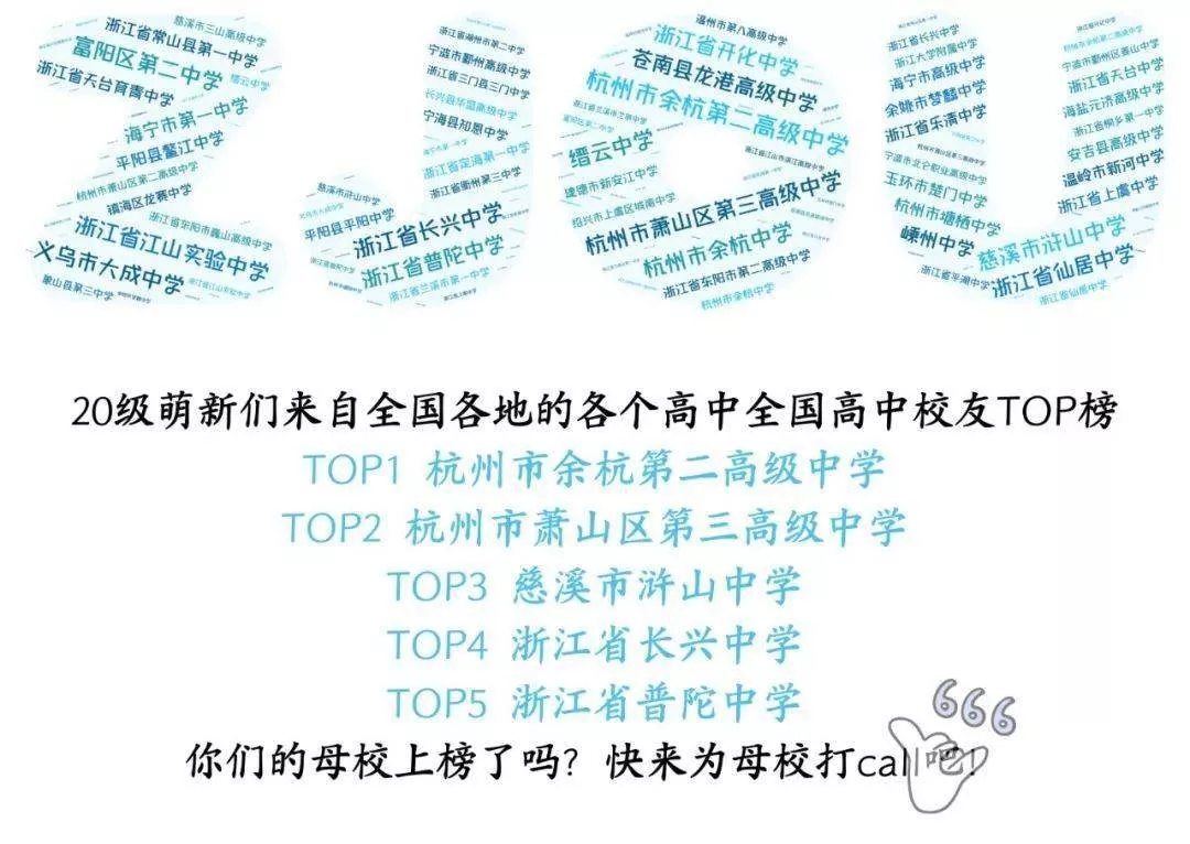 經(jīng)過統(tǒng)計,我們發(fā)現(xiàn)來自浙江臨海市回浦中學(xué)的小萌新竟然有22位!海亮高級中學(xué)和杭州市蕭山區(qū)第五高級中學(xué)的小可愛也有15位,來自慈溪三山高級中學(xué)的有14位。真好,我們又能并肩作戰(zhàn)啦。