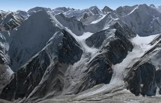 喀喇昆侖山平均海拔超過5500米,氣候高寒,人跡罕至。從這里孕育出的葉爾羌河,喀拉喀什河,向北流經(jīng)昆侖山之后,匯入了塔里木河主干道。包括世界第二高峰,喬戈里峰,也是位于這片雪山密布的山脈之中。