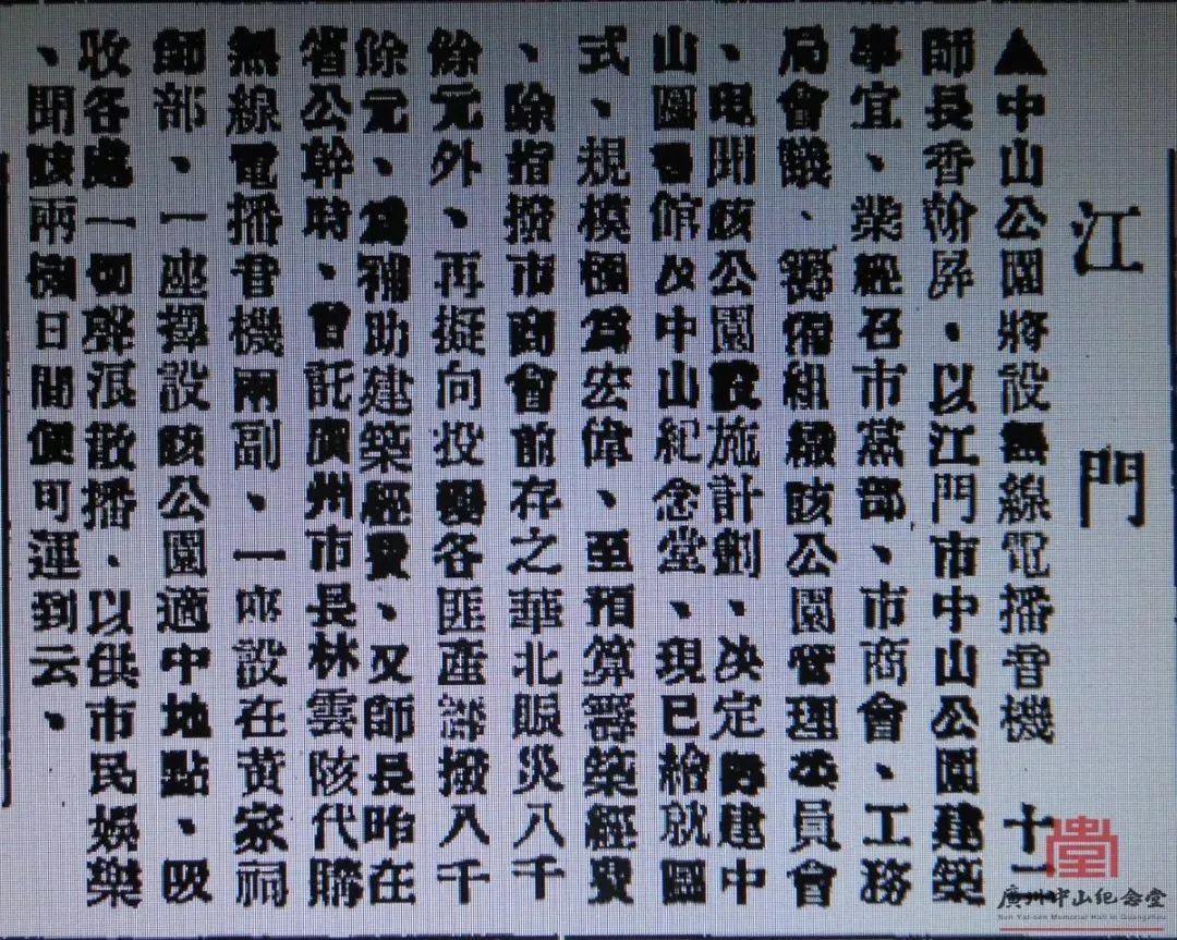 ▲1928年,香翰屏組織籌建的中山公園管理委員會決定建筑中山紀(jì)念堂及中山圖書館,總體預(yù)算為16000余元,并已繪就圖紙,規(guī)模宏偉。圖為《廣州民國日報(bào)》1929年1月4日的報(bào)道。