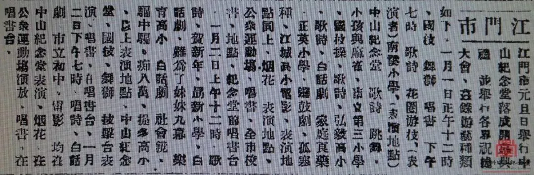 ▲1930年1月1日,江門市舉行中山紀(jì)念堂落成典禮及各界祝捷大會。圖為《廣州民國日報(bào)》當(dāng)天的報(bào)道。