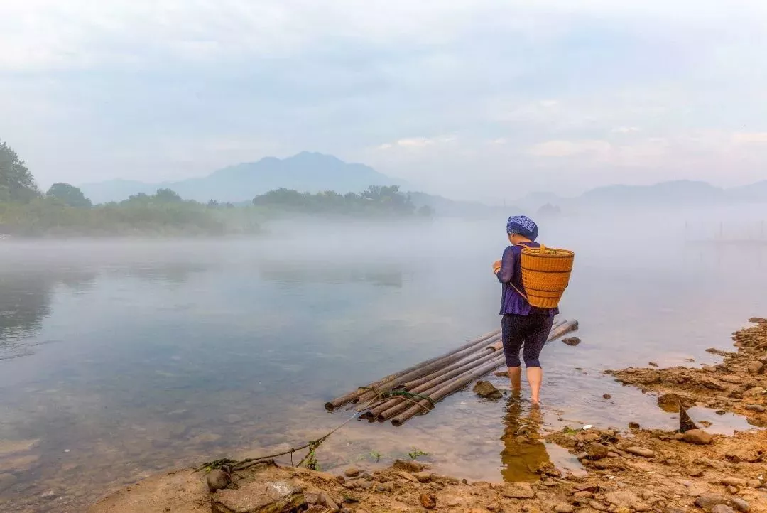 這片被南方喀斯特環(huán)繞的山水,幾乎沒有游客,只有三兩個(gè)當(dāng)?shù)厝私Y(jié)伴走過,江水東流,仿佛時(shí)光靜止,與世無爭,莫過于此。