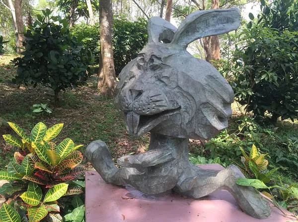 園區(qū)隨處可以見這種闖關(guān)游戲,這關(guān)是視力大考驗(yàn),要從綠色的樹上尋找綠色的蜥蜴。天啦擼!對于近視眼的我來說,這個真的不簡單,找了半天,最后還是靠提示才找到答案!你們也來感受一下!