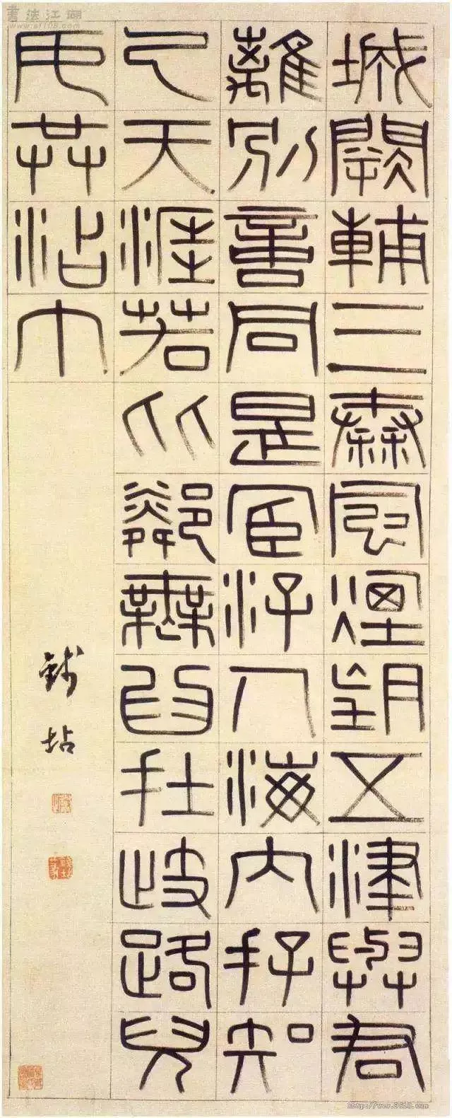 《篆書王勃五言律詩》軸,紙本,篆書 89×35.3cm。南京博物院藏。