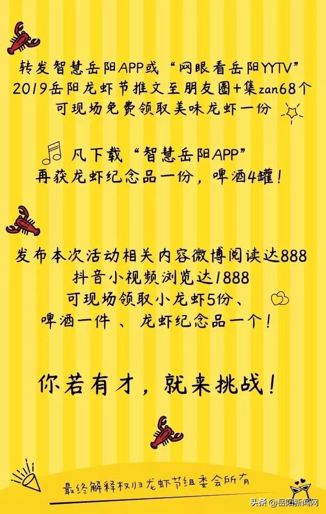 免費(fèi)吃?免費(fèi)喝?2019龍蝦節(jié)巴陵廣場(chǎng)等你來(lái)戰(zhàn)!誰(shuí)會(huì)是“岳陽(yáng)蝦王”? 巴陵