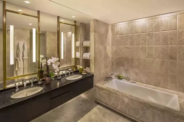 移步酒店內(nèi),主要分左右兩棟樓,右側(cè)叫明星匯,設(shè)計風(fēng)格以電影及舞臺主題為主;左側(cè)叫巨星匯,以奢華金色為主,且多為套房。