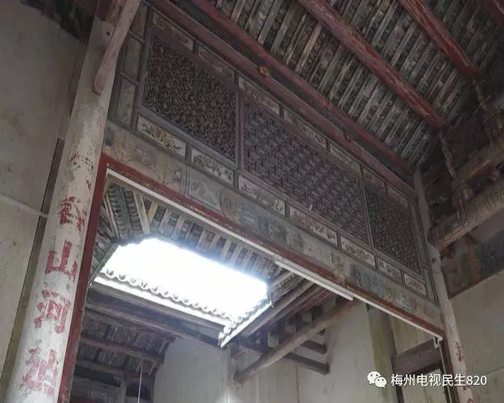 黃伯告訴攝制組,祠堂里面的壁叫孔子壁,孔子壁建筑成本低且不易腐爛,據(jù)說,先用竹片編成,用石灰水浸泡后,涂上油桐油,再兩面摸灰而成。