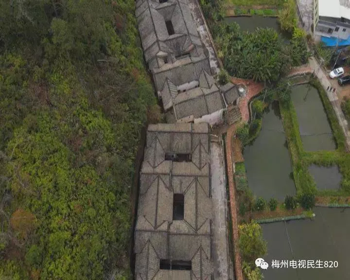 無人機上高空,整個村子的村貌更顯而易見,而最為吸引人的是分散在村里各個角落、保存較好的客家古民居。建筑形式從宮廷式、殿堂式、杠式、鎖頭式到客家地區(qū)少見的自由式、田園式,在村子里都有所體現(xiàn),這不得不讓人感嘆古人的建筑智慧。