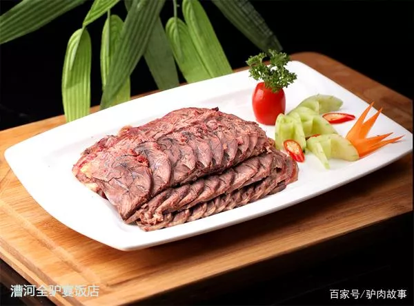 驢肉營養(yǎng)價(jià)值豐富,肉質(zhì)鮮嫩。正由于驢肉肉質(zhì)特殊性原因,驢肉煮制起來頗為不易:火候沒到,驢肉變韌,咬不動;火候稍過,肉就煮爛了;故而能集成驢之大能者,并能烹飪出一席“全驢宴”的,也就只有實(shí)力而且功底深厚的餐館——漕河全驢宴飯店