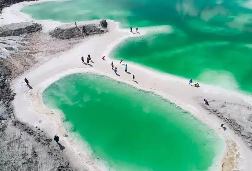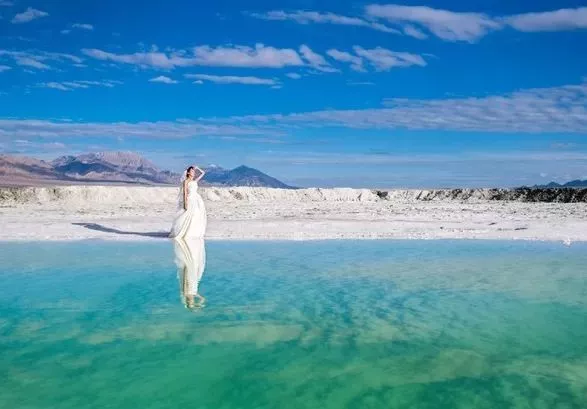它比茶卡鹽湖更夢幻色彩或湛藍(lán)或墨綠,站在這里拍出的倒影,絲毫不遜于天空之境。