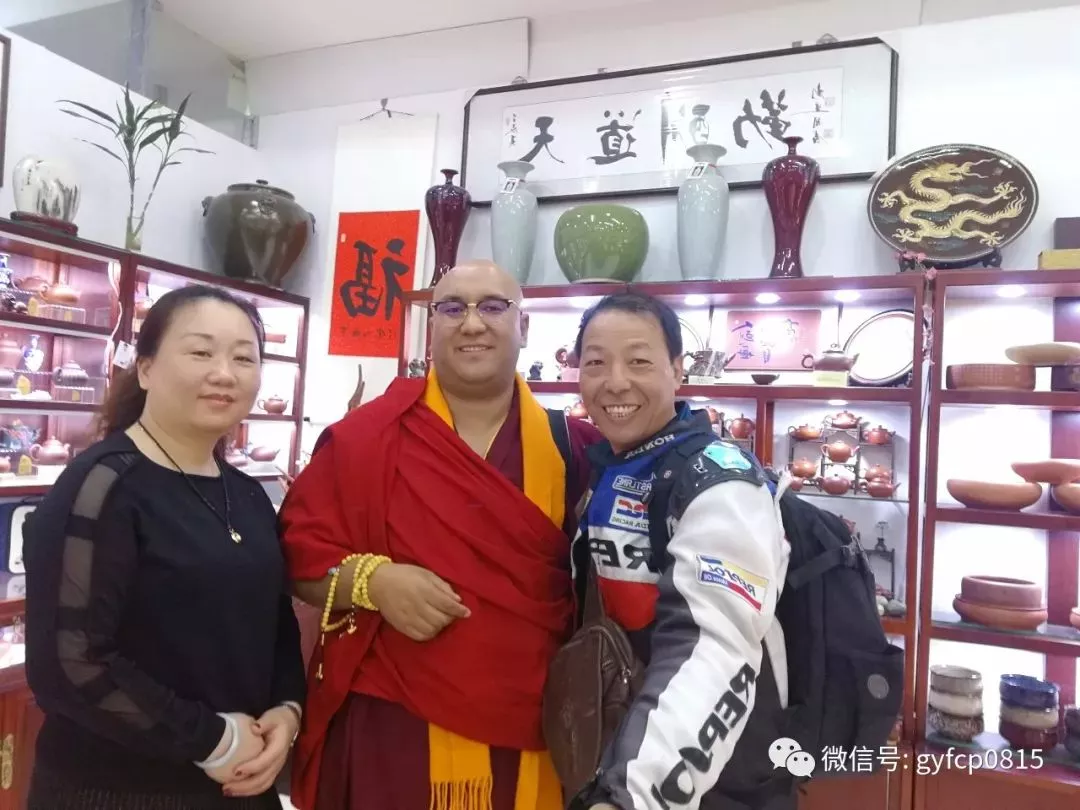 先來到青年陶藝家袁麗萍的藝術(shù)館游覽。這里琳瑯滿目,高中檔俱全。在我參觀后和小袁聊天的時候,進來一位她的老朋友,在青海出家的喇嘛健旺大師也來選購紫砂壺。在我的