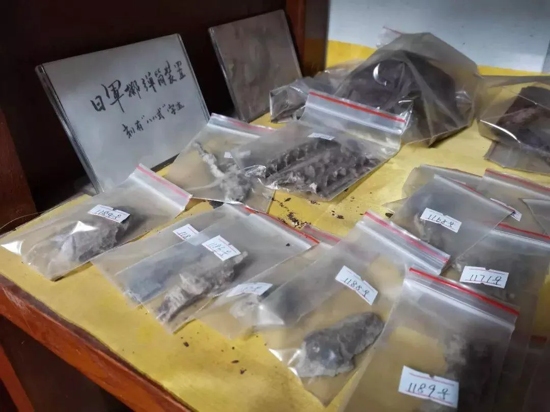 不大的地方楊老師卻能放下幾千件 在戰(zhàn)場(chǎng)遺址找到的實(shí)物,每一件都有一個(gè)編號(hào),每個(gè)藏品都有自己的地方,等著被人問(wèn)起。我和 一個(gè)男孩兒都很好奇楊 館長(zhǎng)找到的日本軍人的 物件。其中有一塊身份牌,上面鑄寫著這位日本軍人的部隊(duì)和個(gè)人信息。