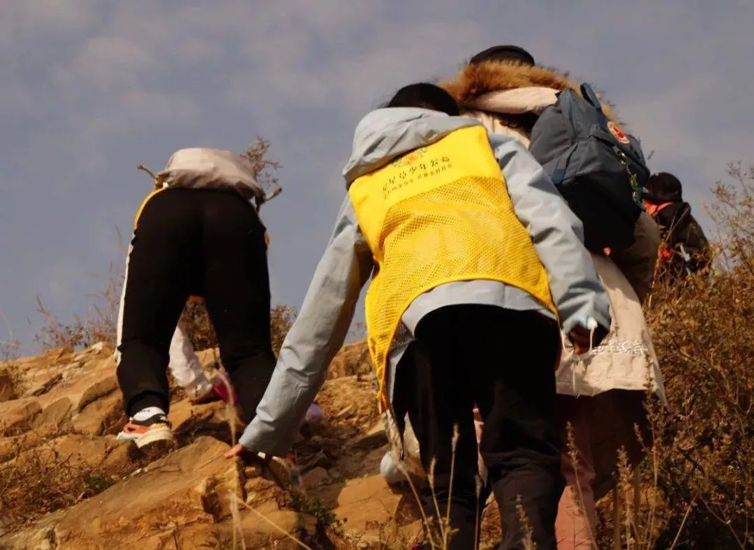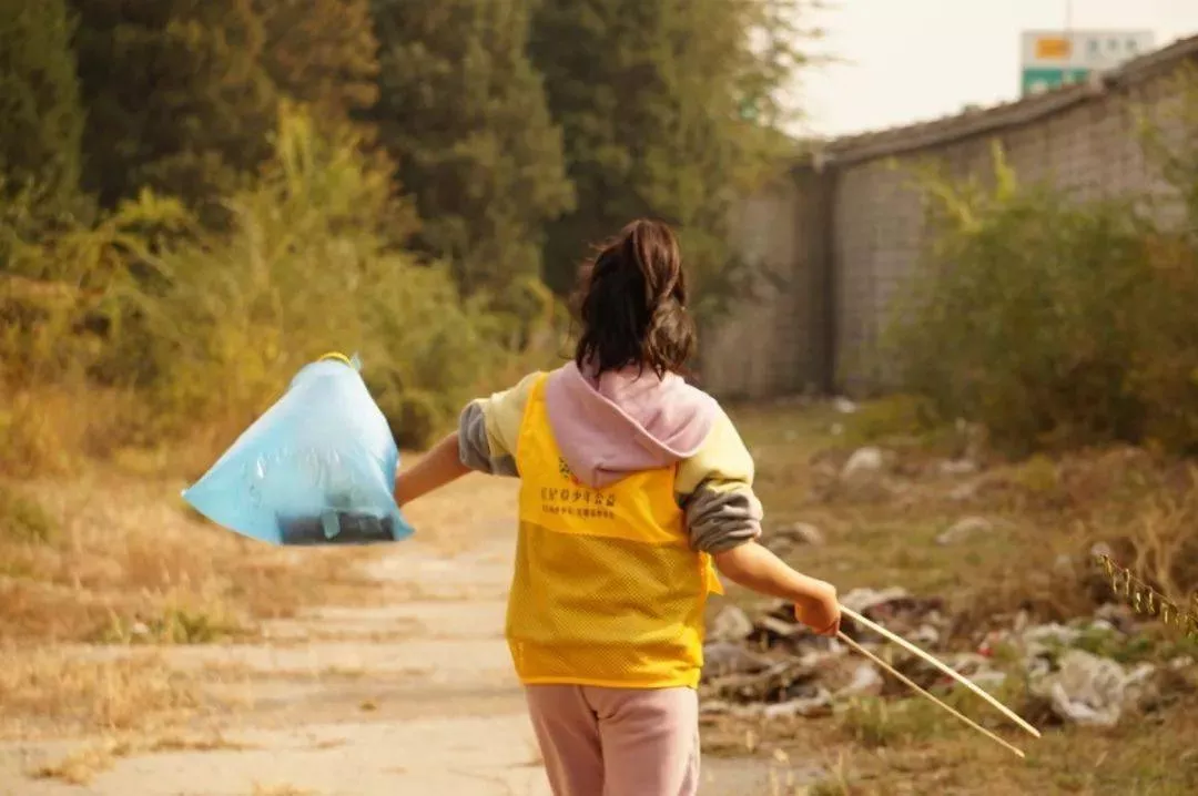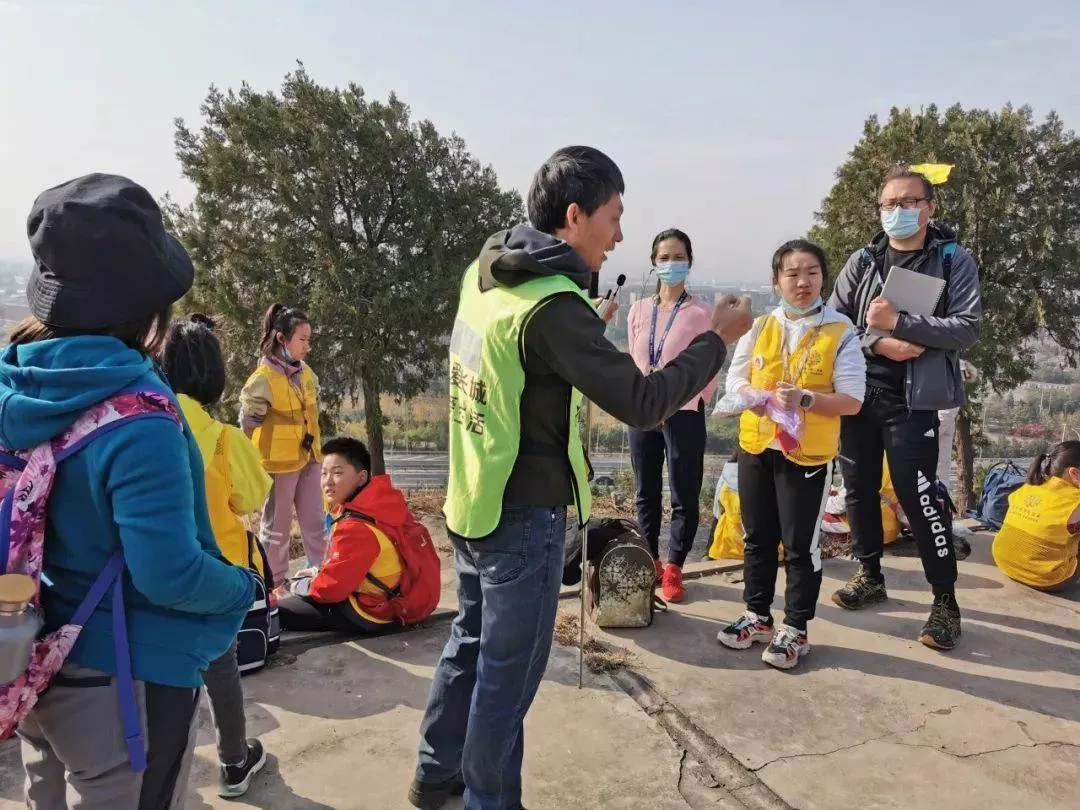 沿途山上沒(méi)有垃圾桶,孩子們的小垃圾袋裝滿,都放入了大垃圾袋里,火箭人老師一路拎著,直到徒步結(jié)束找到垃圾桶。