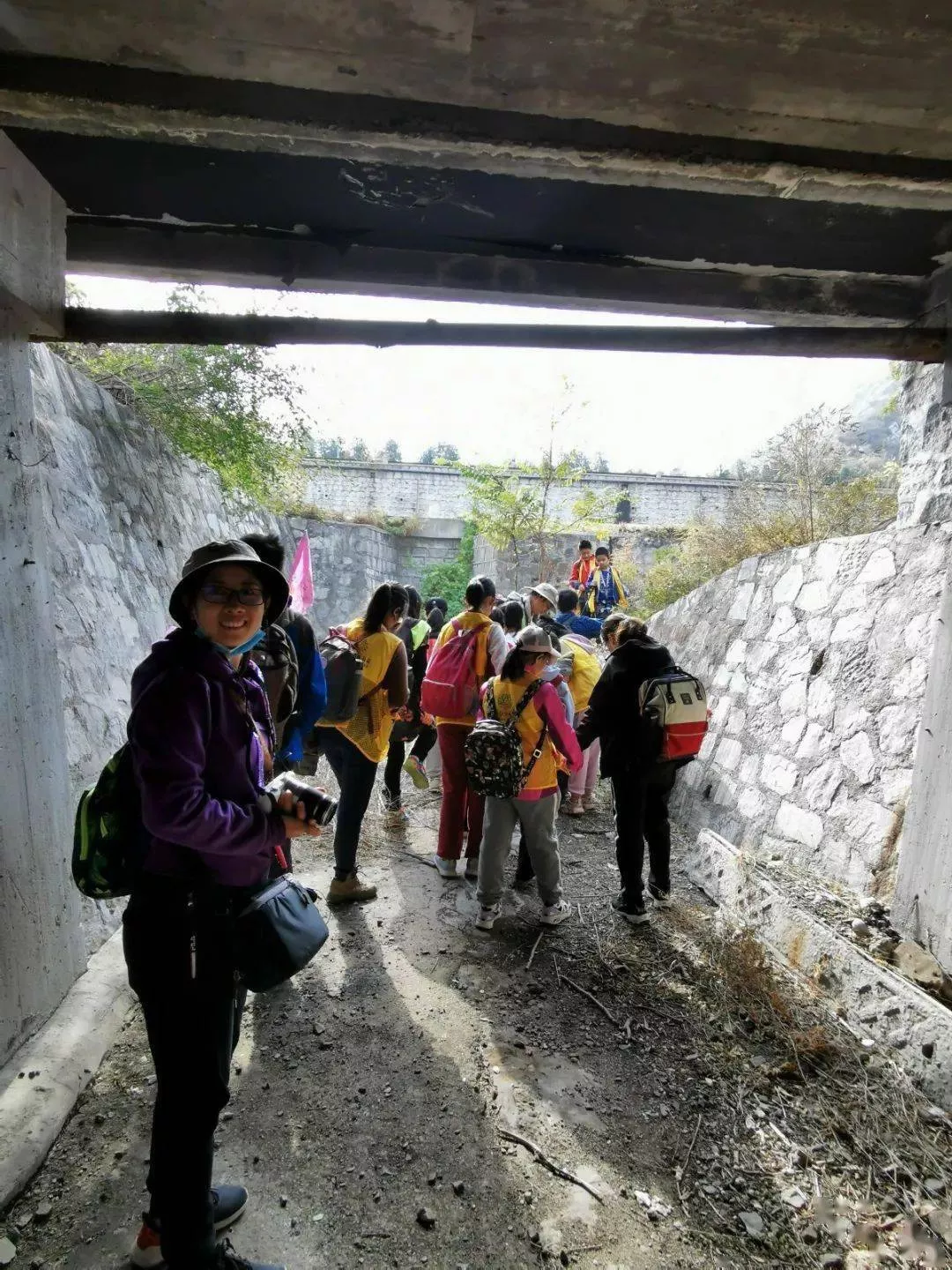 在我們的尋訪團(tuán)隊(duì)中,年齡最小的是一個(gè)6歲的小女孩,她和她的媽媽一直緊跟隊(duì)伍,無(wú)論是走陡坡,還是跨壕溝。下山時(shí)小姑娘被媽媽在身后拉住連衣帽,一路向前,從不落后。還不忘沿路撿拾垃圾。直到從南口抗戰(zhàn)博物館出門上了車,才酣然睡去。是什么吸引著她呢?