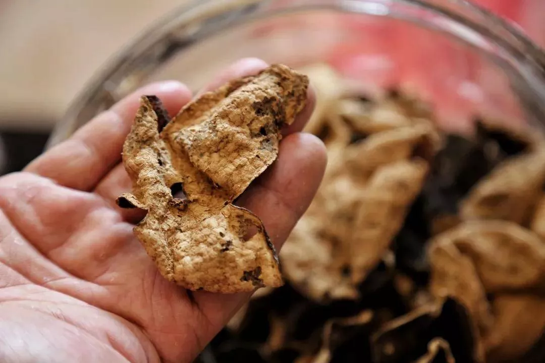 天馬產(chǎn)區(qū)歷史悠久,早在改革開放前就是陳皮的主要高品質(zhì)主產(chǎn)區(qū),所以存世的老陳皮中真正的三四十年以上也多數(shù)為天馬產(chǎn)區(qū)為主,這更是得益于小鳥天堂的存在。他們幾代人堅(jiān)持下來的天然仿野生種植,純手工剝皮,晾曬,是市場少有的高品質(zhì)天然陳皮。而正宗天馬皮的特色,就是其表皮油室分布均勻,凹凸感明顯,紋理清晰,表皮有光澤,有油潤感,氣味芳香清新而帶有陳香藥香味,而泡水茶色通透自然。