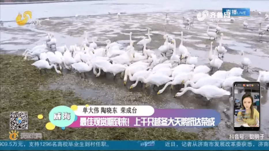 11月6日, 山東衛(wèi)視《早安山東》報(bào)榮成越冬大天鵝數(shù)量過(guò)千