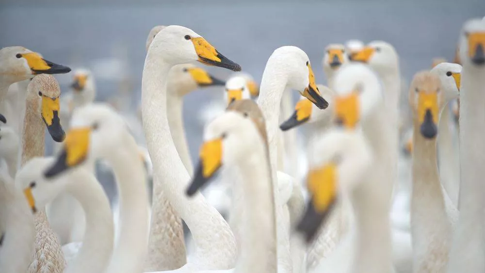 最佳觀賞季到來(lái) 千余只大天鵝已飛抵榮成 大天鵝