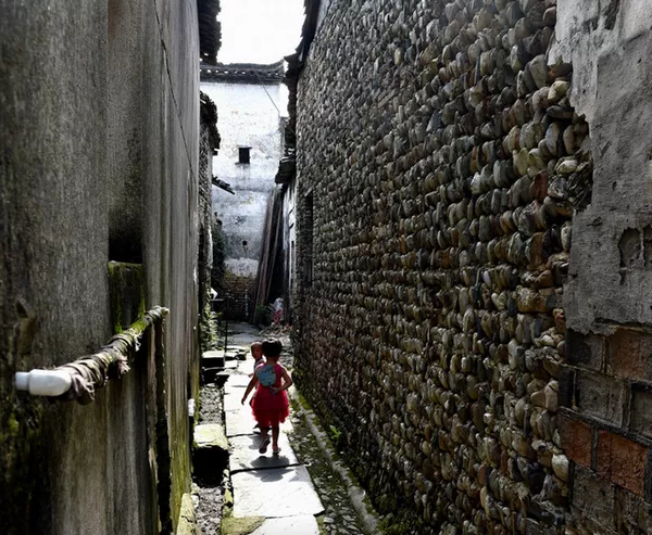 靜靜地在村落巷道里面行走,兩旁是帶有斑駁痕跡的灰墻黛瓦,再往上抬頭,高高的馬頭墻隔絕了外面的光線和藍(lán)天,只留下一條窄窄的缺口納入光線。和其它古鎮(zhèn)古村落一般,古色古香的巷道里面,盡管是幽深靜謐,灰色的墻面上始終有紅色的燈籠修飾,明晃晃的紅燈籠被串連起來(lái),成了單一冷清的色調(diào)中唯一的點(diǎn)綴。在貼著紅色對(duì)聯(lián)的建筑門(mén)前,偶爾會(huì)看到靜坐在門(mén)前的老人,有時(shí)候會(huì)好奇地看著過(guò)往的游客,偶爾也會(huì)看到奔跑在鵝卵石道上的小孩,這些身影讓這條千年古村依舊鮮活,這原本是屬于他們生活的一部分,下一秒可能就會(huì)變成游客鏡頭下的風(fēng)景了。古建筑里面,還會(huì)看到一些只剩下斷壁殘?jiān)墓沤ㄖz址,似乎為了見(jiàn)證歷史時(shí)光一般,透過(guò)殘存的墻面磚瓦,依舊可以看到琳瑯滿目的匾額楹聯(lián)、木刻磚雕,無(wú)一不展現(xiàn)出獨(dú)特的建筑風(fēng)格和嘆為觀止的人文景象。