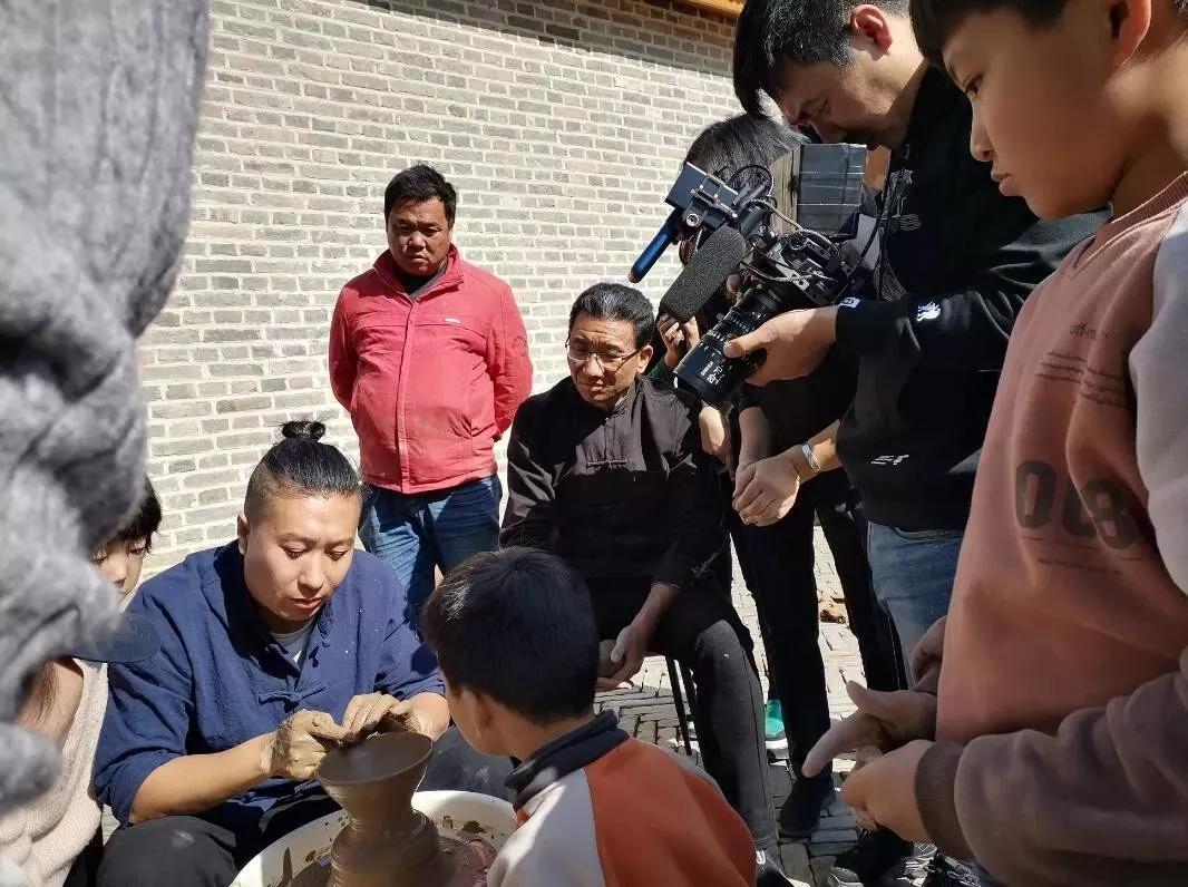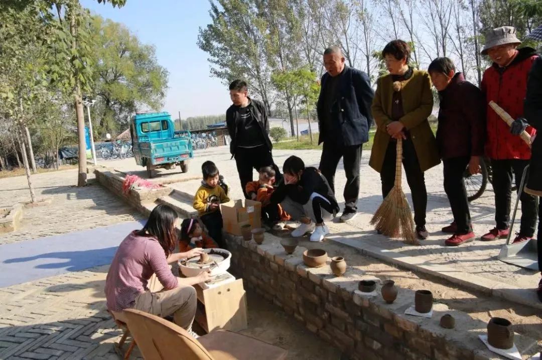 隨后我們滿載而歸,參觀了姜氏祠堂,有幸請到了古村里3位年長的姜子牙族人后裔,他們帶著乾隆年間族譜,來跟我們一起解讀見證。為何這個村子是百年古村落,叫姜莊?大家都姓姜,跟誰有關(guān)系?這一些列有了答案:公元1626年前后,姜太公后裔其中一支姜氏先祖于此開荒種地,距今已有400年歷史。生于明朝天啟末年,如今的姜莊村已經(jīng)400多歲了。第一個在這里揮舞鋤頭開荒造屋的男子,有著曾經(jīng)無比尊貴的姓氏:“姜”姓。眼前這幾位生活在姜莊村的老人,他們真的是姜子牙第97代嫡系傳人,他們有著輝煌的過去。姜子牙治國,確立了“因其俗,簡其禮,通商工之業(yè),便魚鹽之利”的治國方針,在齊國數(shù)百年的發(fā)展史上,代代相傳,產(chǎn)生了巨大的影響,確立了齊文化的歷史地位。{據(jù)記載:姜子牙(1156年—1017年),姜姓,呂氏,名尚,一名望,字子牙,或單呼牙,也稱呂尚,別號飛熊。商朝末年,是東海邊之人。其先祖曾做四岳之官,輔佐夏禹治理水土有大功。舜、禹時被封在呂地(今河南南陽西),所以又稱呂尚。有的被封在申,姓姜。夏、商兩代,申、呂有的封給旁支子孫,也有的后代淪為平民,呂尚就是其遠代后裔。}姜莊還是黃河與京杭大運河交匯處,黃河文化與運河文化、中原文化與齊魯文化在此交織相融。這里黃河泛濫留下大量的泥沙,一直被世人無視著。此次我們的泥塑老師彷佛賦予了它們神奇的力量,在他的“神手”下,腳下的黃土修筑成了土窯,采集來的那一塊塊泥巴經(jīng)過揉捏,拉坯,變成了一件件藝術(shù)品,引得了好多當?shù)厝笋v足圍觀,紛紛贊嘆這高超技術(shù)。大伙也在老師的指導(dǎo)下,做出了自己的創(chuàng)意作品。