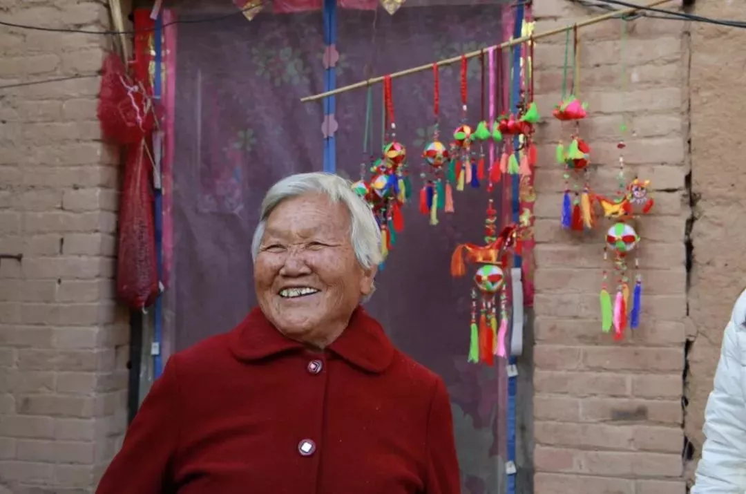 古村里的村民大多都住進了新房,唯獨一位近80的楊奶奶還住在這里,她的院子跟民宿院落融為一體,就在入口處,我們拜訪了她老人家。據(jù)說村中女子都有著世代相傳的巧手藝,比如織粗布、手工麻扎、土布織染、草條編織、剪紙刺繡紙扎面塑等。此次,楊奶奶也給我們展示了她的虎頭鞋和繡球。