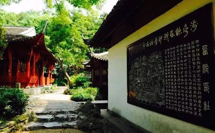 沿白堤走去,緊鄰樓外樓邊,孤山南麓,西泠印社依山而建,堪稱江南園林之佳作。主要建筑有柏堂、竹閣、仰賢亭、還樸精廬等,名人墨跡觸目可見。