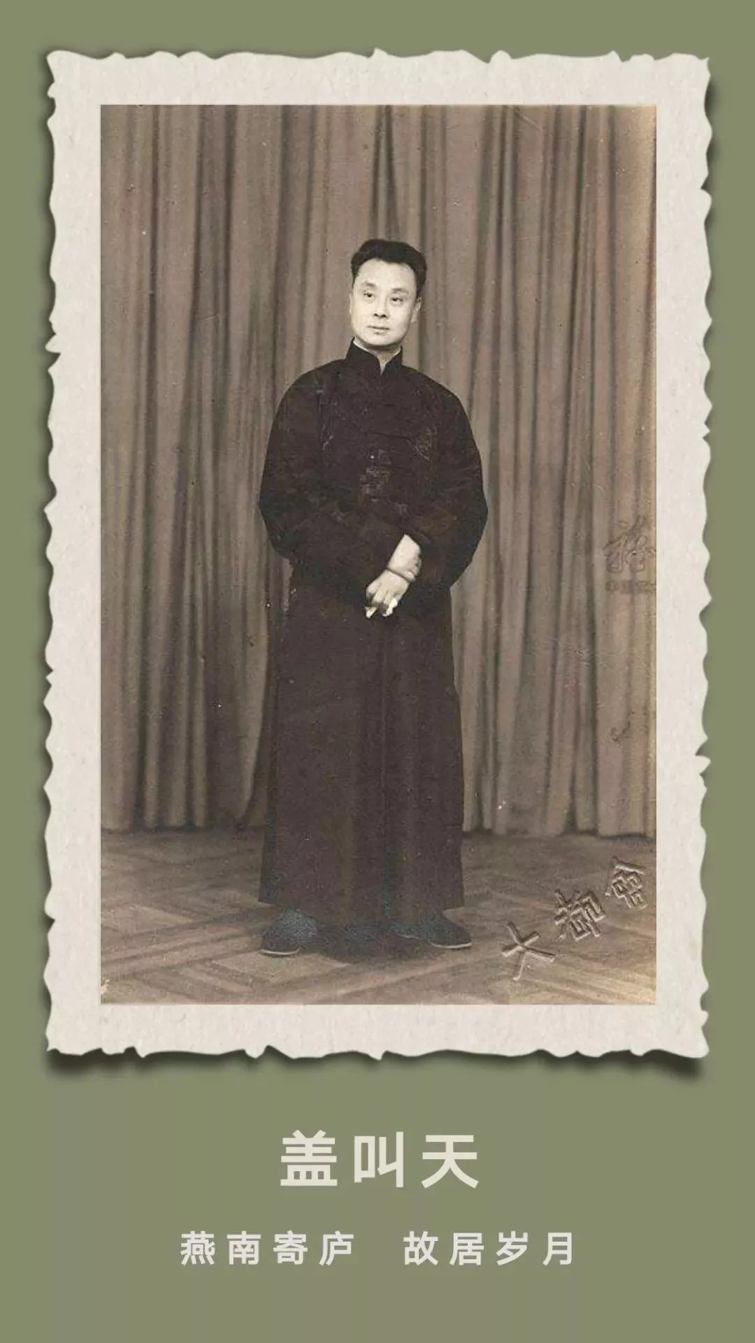 楊公堤入趙公堤,便見“燕南寄廬”,這里門前不遠(yuǎn)便是金沙溪,當(dāng)年此處偏僻,需依靠水路進出。如今通了路,卻依然是遠(yuǎn)離市井的幽靜之處。此處的主人就是京劇藝術(shù)大師蓋叫天先生的故居。