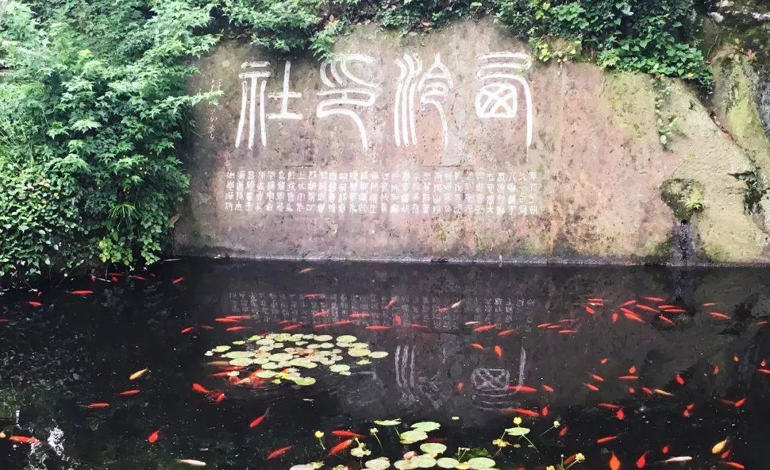 從印社北門進入,再沿小徑往左,可以看到小龍泓洞的洞內(nèi)匯聚著吳昌碩、葉為銘、王一亭等大師的手跡。