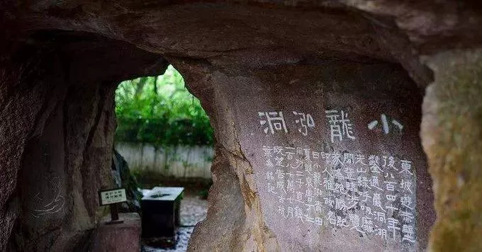 欣賞仰賢亭后,走進紫藤花滿覆的鴻雪徑,經(jīng)涼堂,到達(dá)山頂“小龍泓洞”。小龍泓洞于1922年7月人工開鑿,以“浙派”篆刻始祖丁敬的號命之。
