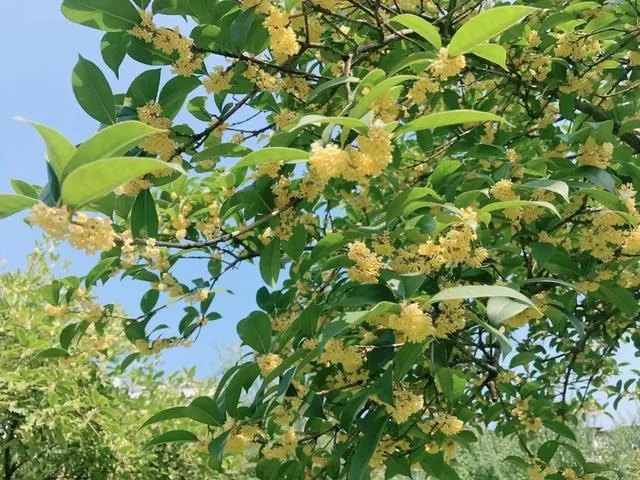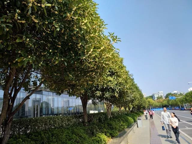 這幾天行走在武漢的大街小巷經常會被突然襲來的桂花香包圍這是一種幸福的味道尤其是16日的一場雨之后桂花更香了八月桂花開農歷八月中秋節(jié)前后開花的桂花被稱為“八月桂”包括金桂、銀桂、丹桂可持續(xù)開花與吐香15到20天也就是我們俗稱的桂花今年武漢的桂花遲到了整整一個月來自園林專家的科學解釋:今年武漢遇上了伏旱連秋旱持續(xù)約100天的干旱少雨天氣