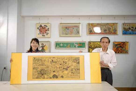 陳永才與女兒陳嘉彥合作的大型剪紙《古鎮(zhèn)佛山》。