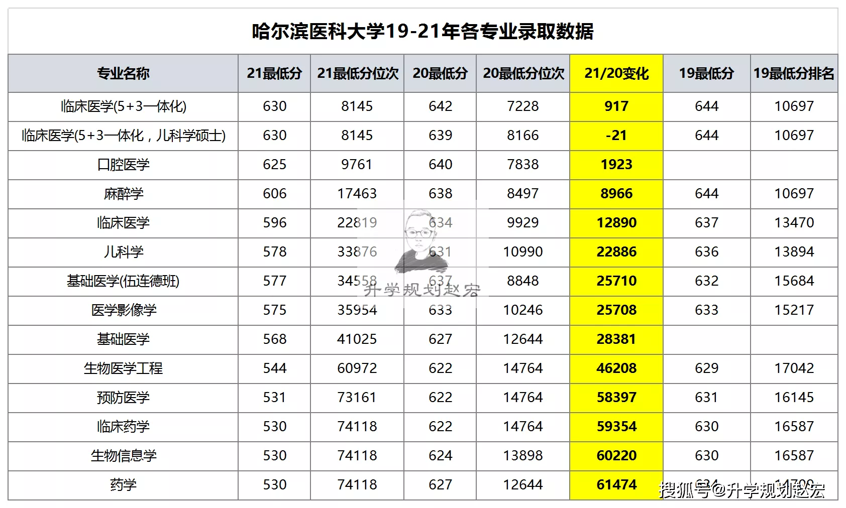 前面咱們說了2021年重醫(yī)、川北醫(yī)學院、西南醫(yī)科大學等西南地區(qū)的醫(yī)學錄取變化情況,一句話總結就是家長非常理性了,醫(yī)學熱門專業(yè)保持穩(wěn)定,其他專業(yè)位次下降;那本文我們再來看省外的哈爾濱醫(yī)科大學2021年在四川的招生錄取情況,最高634分,臨床醫(yī)學(5+3一體化)專業(yè);最低530分,臨床藥學、藥學和生物信息學專業(yè),位次74118名,對比2020年最低分622分,位次14764名,位次下降了59354名;變化可謂是相當?shù)拇笱剑?/p>