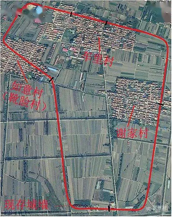 考古勘探測(cè)繪圖:謝家村離南城墻較遠(yuǎn),形似一只高筒靴。